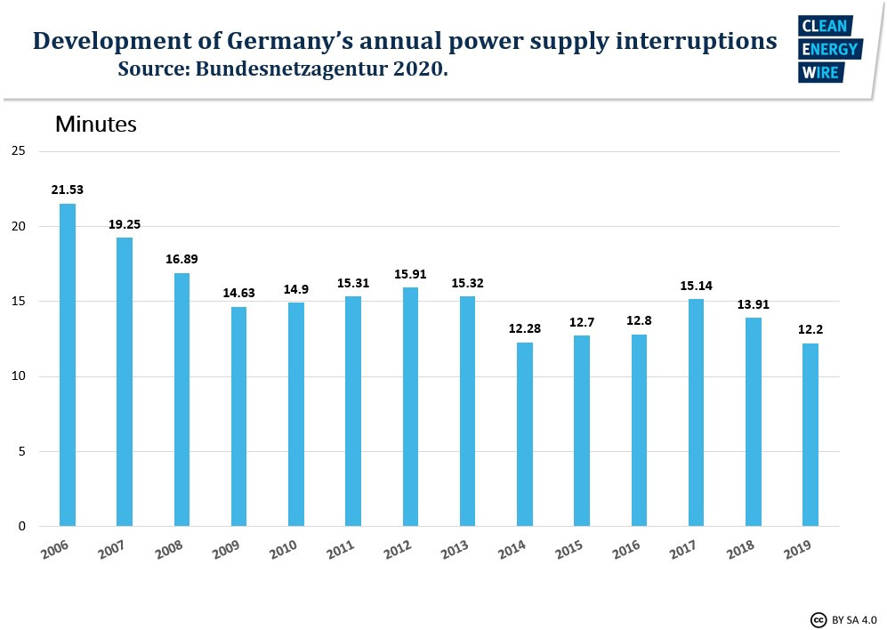 May 2021 | Production of intermittent green electricity has risen sharply over the last few years in Germany, and industry occasionally voices concern about the security of the power supply. But Germany still has one of the most reliable electricity grids in the world, and according to the country's grid agency BNetzA, actual power blackouts are increasingly caused by extreme weather events, rather than by the transition to renewable energies. Read the Factsheet here.