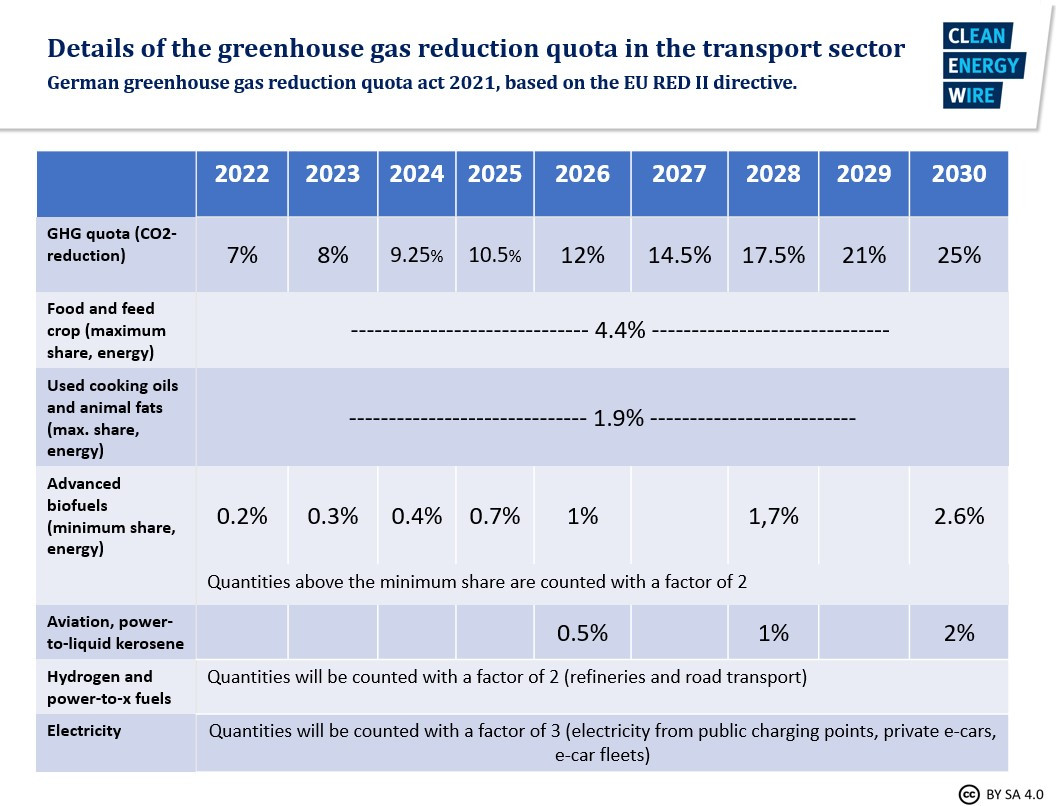 - The greenhouse gas reduction quota should be increased from six percent to 12 percent by 2026, 17.5 percent by 2028 and 25 percent by 2030.