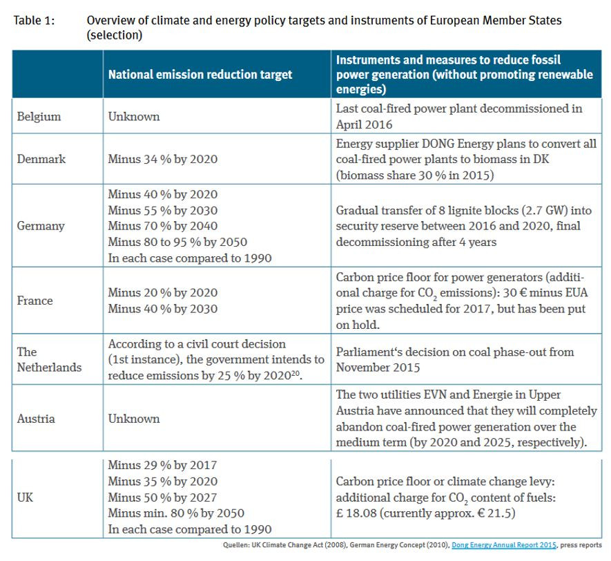 Such instruments are, for example, the British carbon floor price; Germany’s support scheme to boost renewable power expansion; Germany’s lignite security reserve; or the planned German coal exit by 2038.