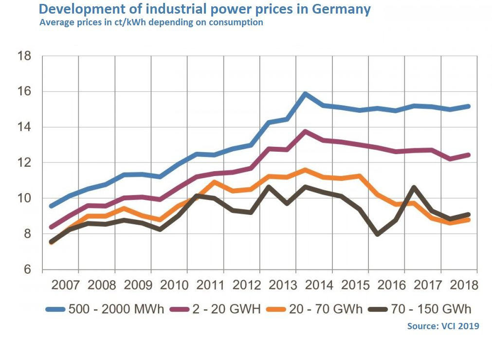 On average, industrial companies paid 15.98 cents/KWh in early 2019, an increase of 0.68 cents/kWh compared to a year earlier. This was due to rising wholesale prices, according to the latest monitoring report drafted by Germany's grid agency (BNetzA) and the Federal Cartel Office.