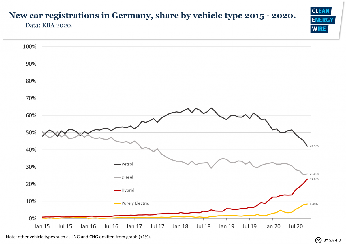Most experts currently believe that the roll-out of electric vehicles in Germany will be much slower. Earlier this week, a study published by consulting firm Deloitte said about six million electric vehicles seem feasible at best, because the automotive industry is not in a position to switch from the currently still profitable combustion engines to the as yet unprofitable electric drive technology. The German government said this week it will spend an additional three billion euros to help the car industry manage a smooth transition to clean mobility and weather the coronavirus crisis.