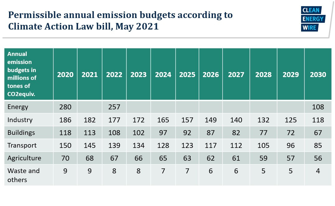 - Germany has brought forward its target date for reaching climate neutrality to 2045 and has set annual emission targets for each sector to reach that goal. Emissions in the transport sector will need to drop by more than 40 percent within this decade (see graph), with increasingly steep reductions towards the end of the 2020s.