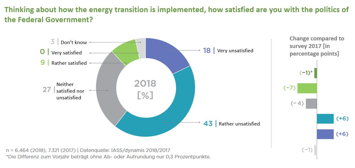 A vast majority of Germans remain in favour of the energy transition. The approval rate rose to 90 percent last year, up from 88 percent in 2017, according to a survey by the Institute for Advanced Sustainability Studies (IASS), the 100 Percent Renewable Foundation and the Innogy Foundation for Energy and Society