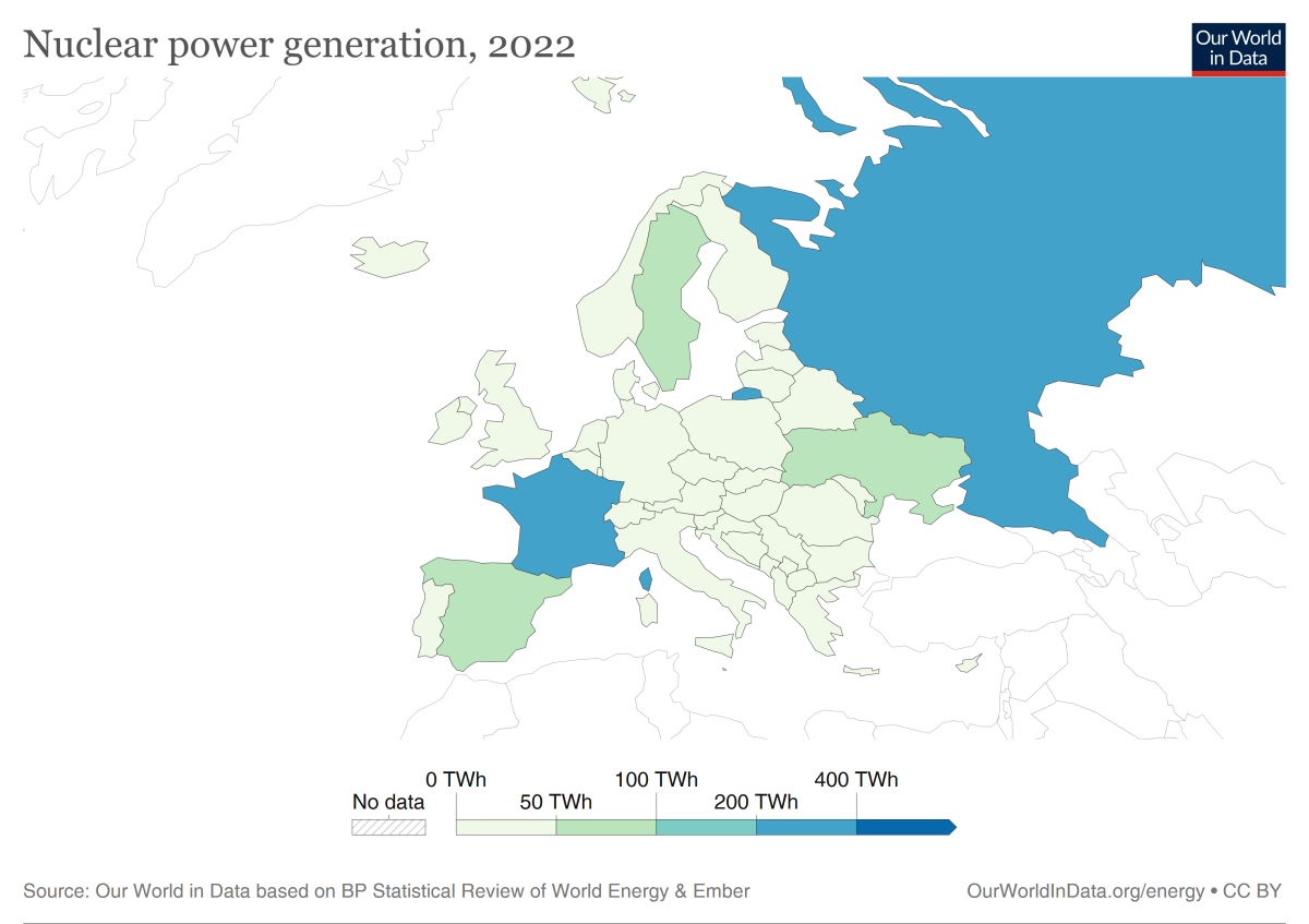 Even without a renaissance, France dominates the EU’s nuclear power industry, boasting 52 percent of the bloc’s total capacity in 2021, when Germany still had several reactors operating. France also boasts the second largest nuclear power capacity in the world, ranking behind the U.S. and slightly ahead of China af of 2023.