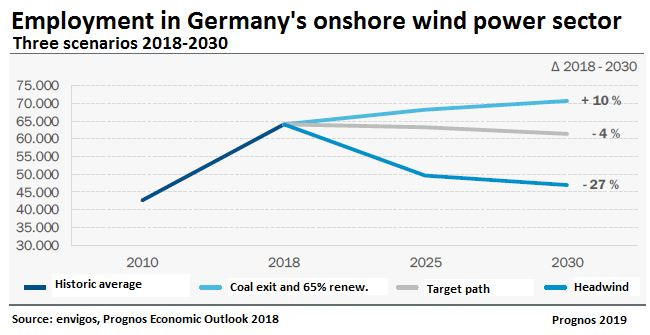 Although 43 percent is a "very positive" share, it "stands in sharp contrast to the dramatic situation in the expansion of wind energy," said head of BDEW Stefan Kapferer, warning that Germany's target of a 65 percent share in consumption by 2030 was at risk. A study by consultancy Prognos, commissioned by engineering association VDMA Power Systems and presented on the same day, says that German onshore wind power's "success story is currently in danger". With only 0.5 gigawatts (GW) of newly installed capacity in the first nine months of 2019, 2.4 GW in 2018 and 5.3 GW in 2017, onshore wind power expansion has seen a "dramatic slump".