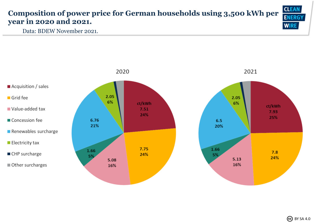 Power prices in Germany are among the highest in Europe. The high costs partly are due to the mandatory support for renewable energy sources – but most customers continue to support the country's energy transition regardless. Wholesale electricity prices on average have been in decline in recent years, but surcharges, taxes, and grid fees raise the bill for Germany's private households and small businesses. However, market observers say that power costs are often not even high enough for customers to look for cheaper alternatives. At the same time, the 2021 energy price hike in Europe is upsetting government plans to ease the financial burden on housheholds by reducing fees and surcharges on consumption.