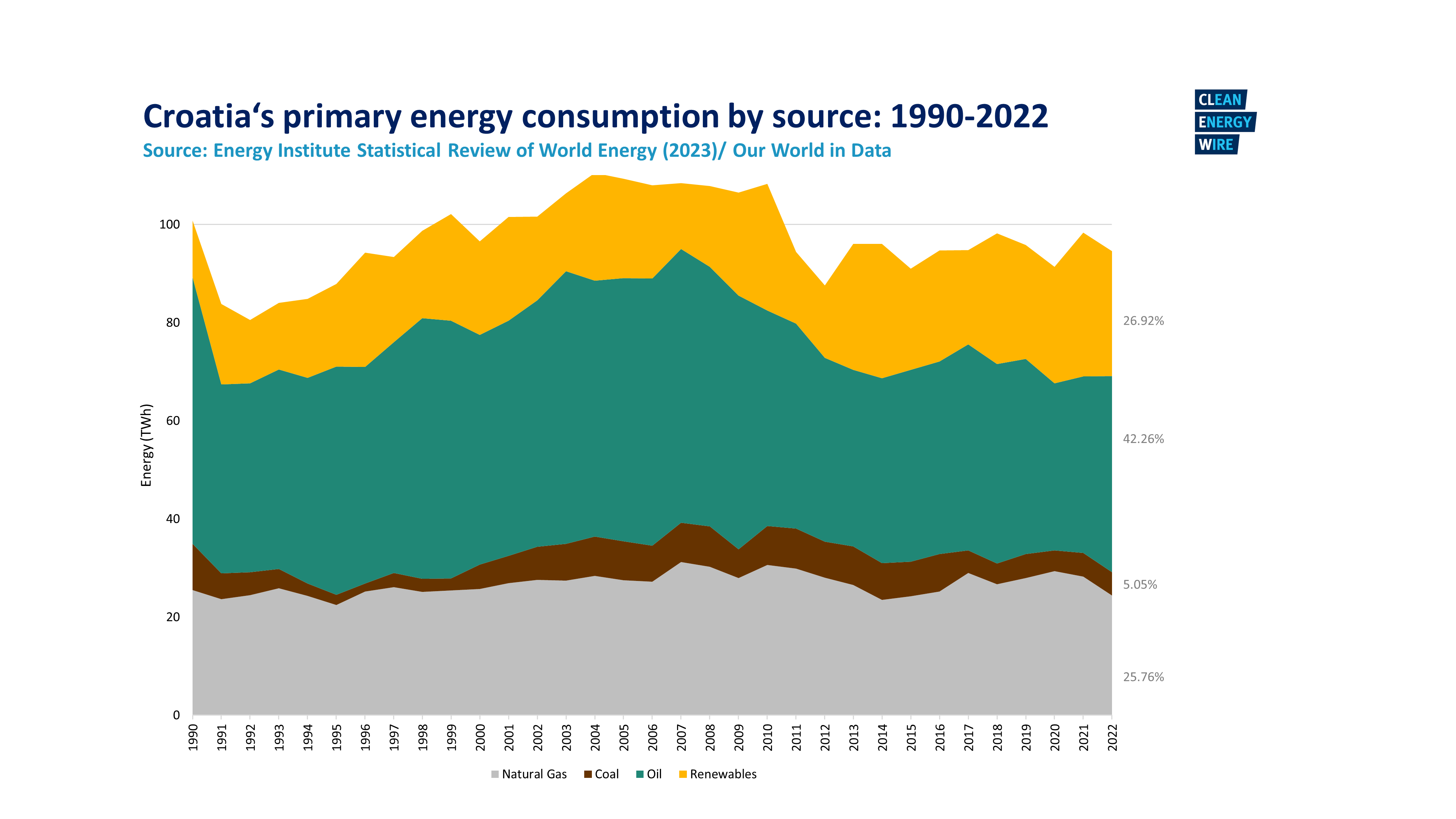 - Croatia currently imports energy (100 percent of its coal, 40 percent of gas and 80 percent of oil needs) and has been particularly vulnerable to the rise in fossil fuel prices.