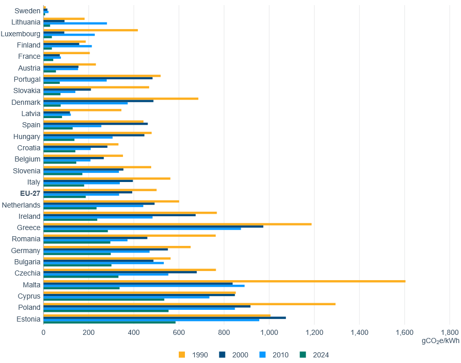 Eurostat: EU greenhouse gas emission intensity of electricity generation, country level