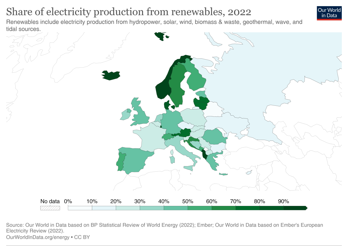 Share of renewables in power production in |