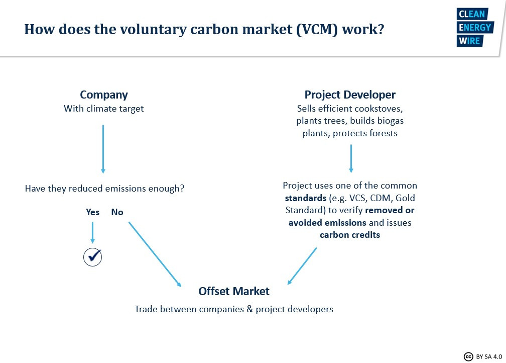 There is no central control or government regulation for the voluntary carbon market. Companies buy the carbon credits sold by the various project developers to neutralised emissions in their operations, value chain or outside their direct sphere of influence. The projects are – often but not always – quality controlled by one of the leading standards (e.g. VCS by Verra, Gold Standard, CDM). To ensure integrity of the traded emission offsets, certain criteria are commonly applied and checked (by the standards):