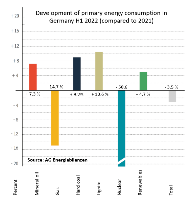 Drop in economic output and warm weather cut German energy use 3% in first half of 2022