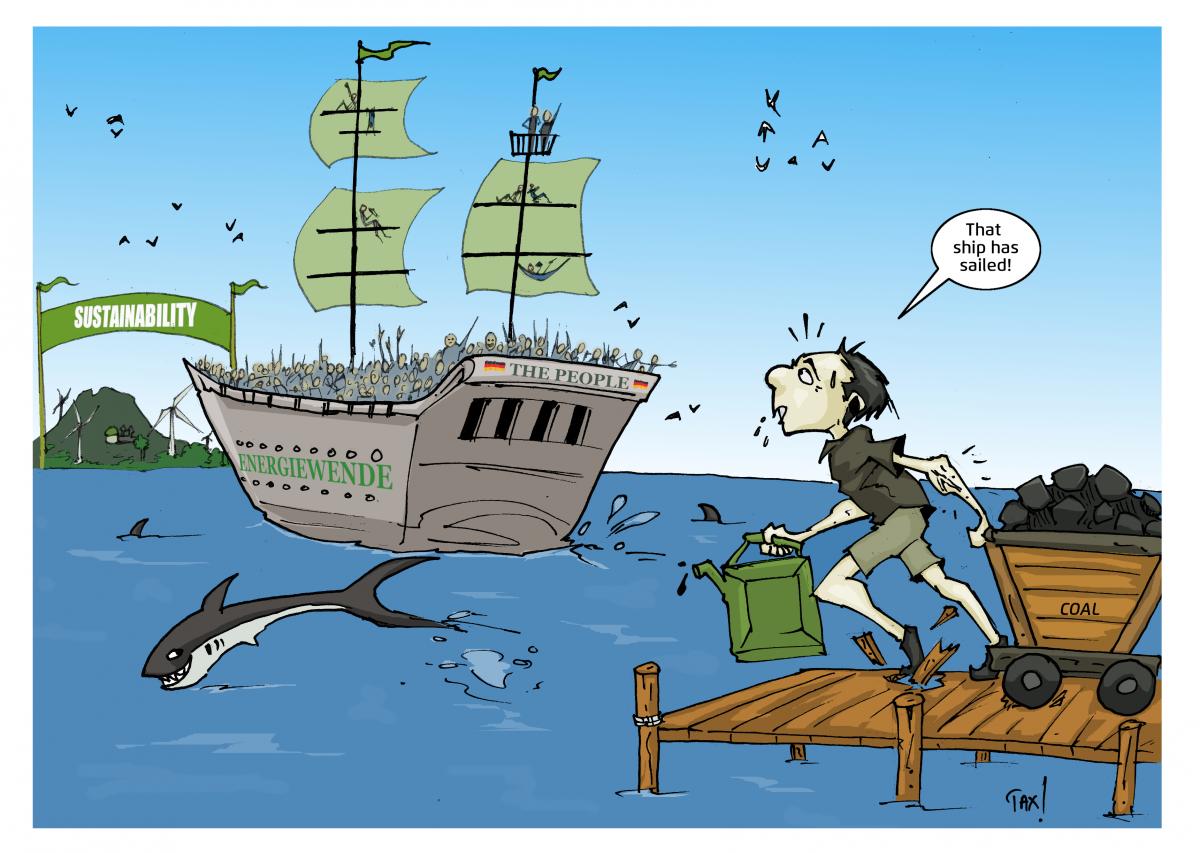 A large majority of the German public supports the transition to a low-carbon and nuclear-free economy. Our visiting cartoonist Mwelwa Musonko (@MwelxTax) says some might miss the boat.