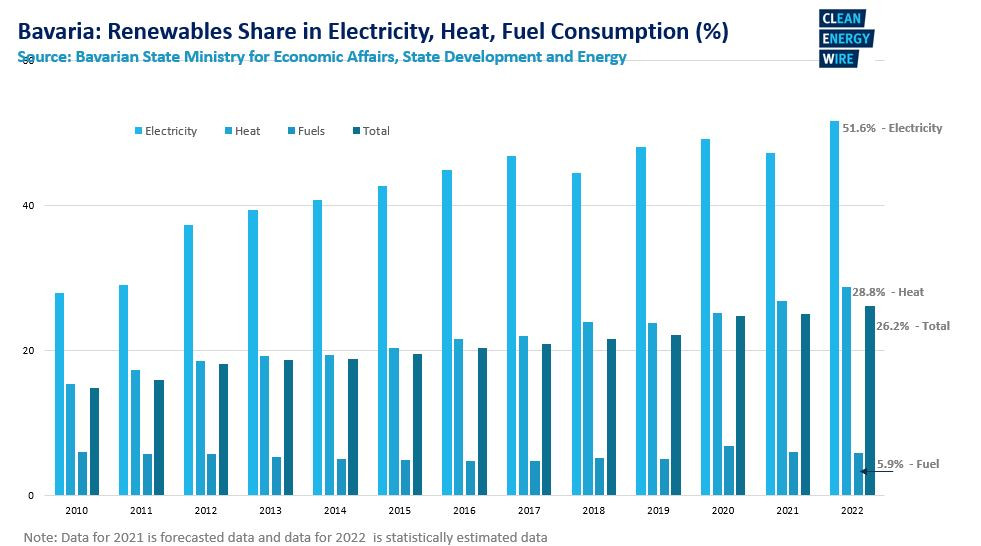 Regarding Bavaria’s climate action and energy transition credentials, the state has successfully maintained its leading position as solar power and bioenergy producer in the country, benefitting from a large agricultural sector and sunny weather. However, industry groups and local mayors in Bavaria have repeatedly criticised Söder’s and Aiwanger’s coalition for not being resolute enough in the transition to renewables. They urged the government to lift restrictions on wind power construction, particularly since the loss of Russian gas and the nuclear and coal phase outs have hit the state’s heavy industry, which features heavyweights such as BMW, Audi and Siemens, harder than many others in Germany.