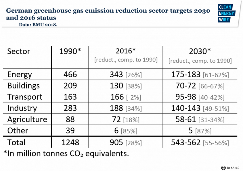 According to the BMU, the measures for the energy sector are largely outlined in proposals from Germany’s coal exit commission. The agriculture ministry has also submitted proposals, but so far the government has not produced plans for the other relevant sectors, transport and buildings, and there are few signs that deliberations are proceeding smoothly.