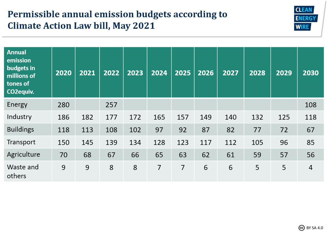 - Germany has brought forward its target date for reaching climate neutrality to 2045, and has set annual emission targets for each sector to reach that goal. Emissions in the transport sector will have to drop by more than 40 percent within this decade (see graph), with increasingly steep reductions towards the end of the 2020s.