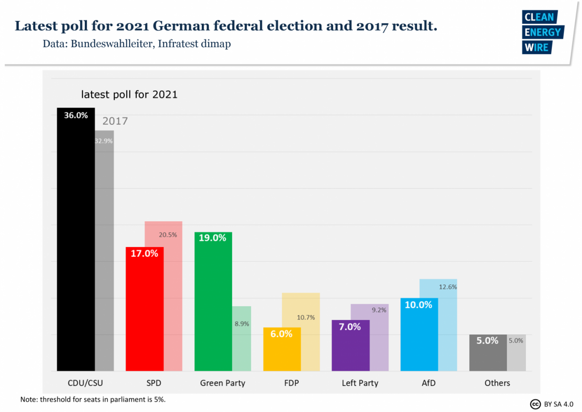 Knopf told the Clean Energy Wire that climate as an election issue had irrefutably gained a lot of ground compared to the previous vote in 2017, when there were "nearly no debates on the topic." The 2017 elections were dominated by the fallout from the so called refugee crisis and the rise of the right-wing populists. Since then, Germany has seen two consecutive years of severe droughts and heatwaves; hundreds of thousands of people march in the Fridays for Future climate protests; an unprecedented rise of the country's Green Party in the polls; and the hard-fought end to coal-fired power production. "Many things that appeared unthinkable last time will now play an important role," Knopf said.