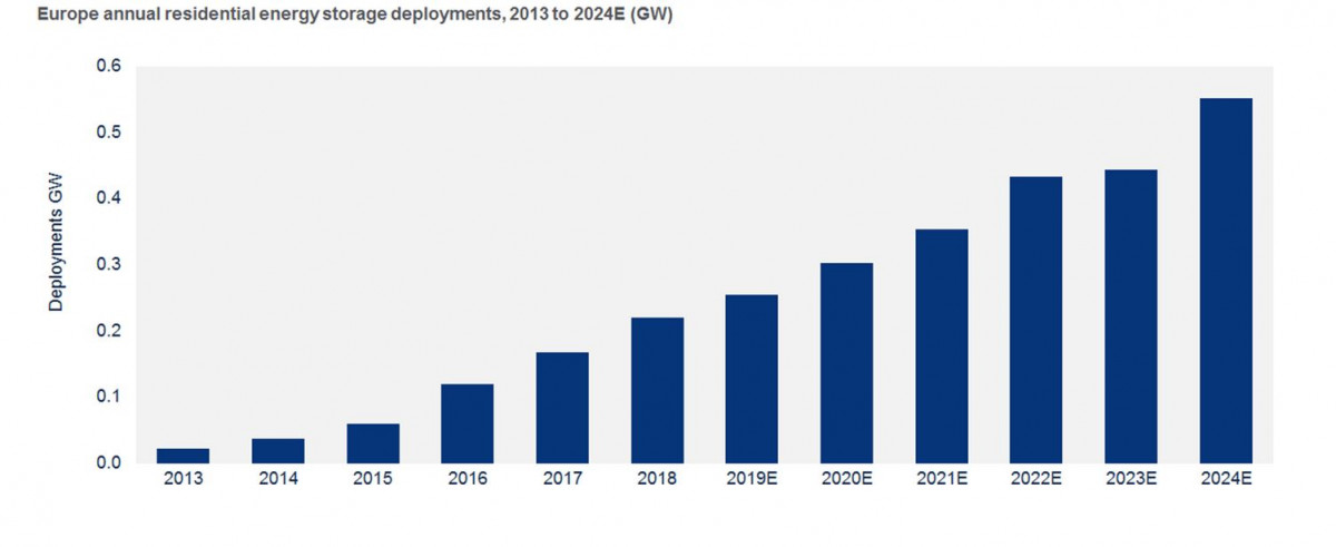 “Off the back of Germany’s success, residential storage is beginning to proliferate into other European countries,” McCarthy said. He added that Germany, Italy and Spain were moving towards grid parity for residential solar PV systems with a battery attached, meaning this combination is no longer more expensive than electricity from the grid. According to the analysis, residential storage will reach this tipping point in Italy by 2021 and in Germany by 2022, which will boost mass adoption of the technology. Annual deployments in Europe are set to more than double, reaching 0.5 GW/1.2 GWh by 2024, the consultancy forecasts.
