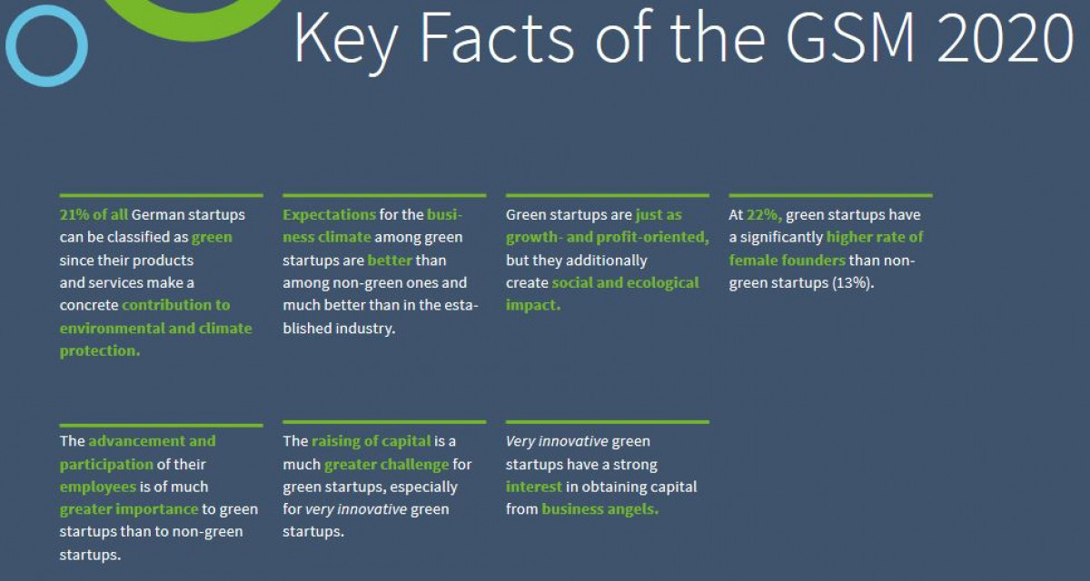 "Green start-ups have a key function as a motor for structural change," the report says. "While established companies are strong in improving existing products, it is start-ups that are pioneers in bringing fundamental environmental innovations to market."