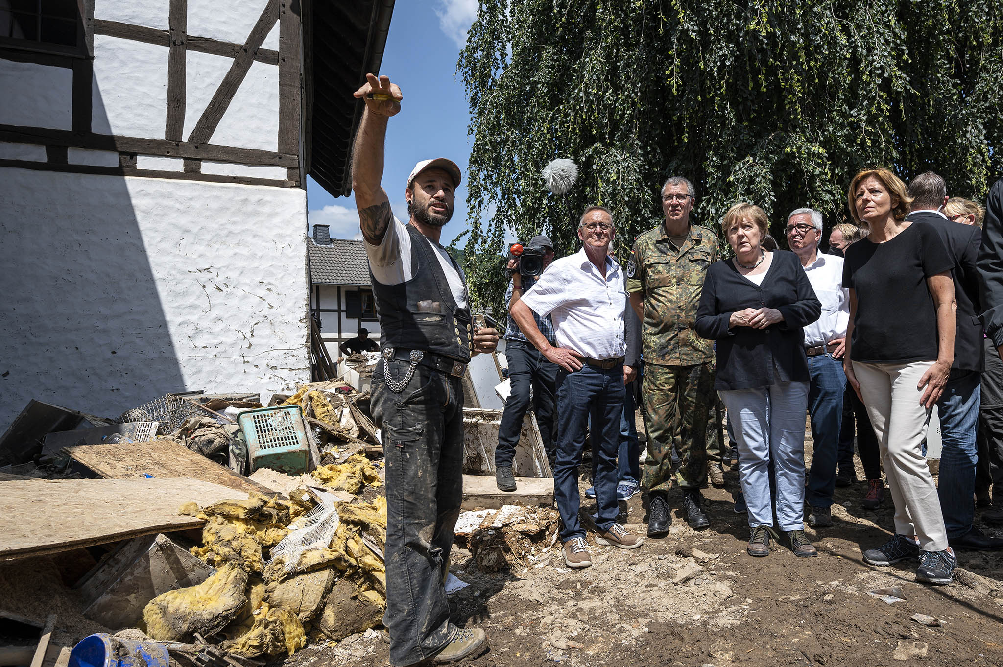 Angela Merkel has said that Germany must speed up its efforts in tackling the climate crisis after devastating floods killed more than 150 people in the west of the country, with many more still missing. "We have to hurry up, we have to up the pace in the fight against climate change,” Merkel said during her visit to the small town of Schuld in western Germany, one of the hardest-hit areas, on 18 July. While one flood in itself is not an indicator of the climate crisis, the number of such extreme weather events has increased in recent years and that was ascribable to climate change, she emphasised. More attention should also be paid to climate adaptation, Merkel said. “A comprehensive analysis is necessary of what needs to be adapted in flood protection, agriculture and forestry.”