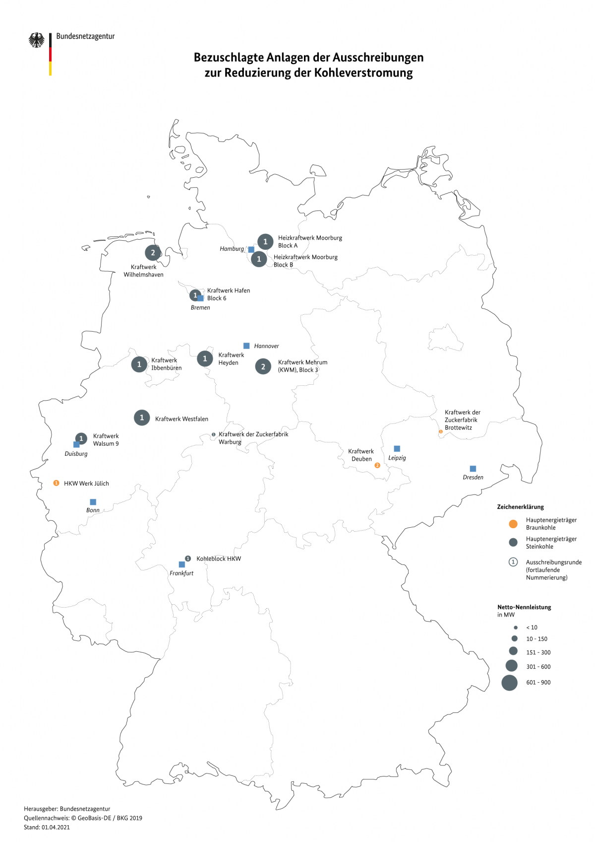 Two German hard coal power stations and one small-scale lignite plant will stop selling electricity by the end of 2021, as their bids to end operations under the coal exit tenders were successful in the second round of auctions. The plants have a combined capacity of 1,514 megawatts and are located in the Northern, middle and Eastern parts of the country. They participated in the second round of auctions held according to Germany’s coal exit legislation that aims to have coal power phased out by 2038 at the latest. Bids for payments to end operations ranged from zero to 59,000 euros per megawatt, the Federal Network Agency (BNetzA) in charge of the process said. The maximum bidding price had been limited to 155,000 euros per megawatt. "The tender was again oversubscribed," said Jochen Homann, president of the Federal Network Agency. "The highest award is significantly below the legal maximum price." As a final step, transmission grid operators check whether the successful plants are relevant to the stability of the power system – only if this is not the case will they be permitted to retire entirely.