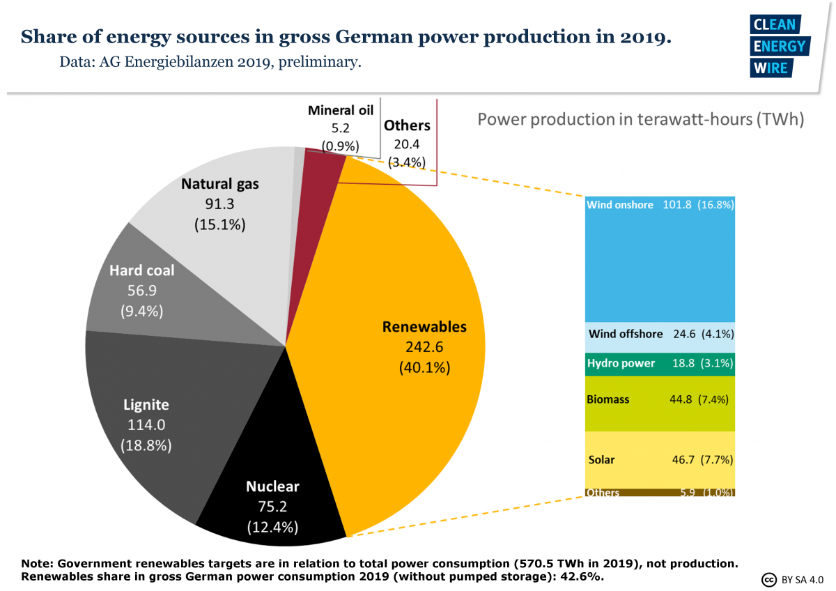 The share of renewables in German power consumption thus stood at a record 42.6 percent in 2019.